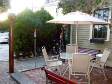 The state-of-the art infrastructure provides the most comfortable environment throughout all seasons. Outdoors, you may choose to simply relax in the sun, shade, or spa. Set amongst trees, roses and champagne grapes with a fully maintained kitchen, sink and refrigeration to meet every need the patio is always available year round. In the evening, host a candle lit garden dinner party. All options are yours within Ani's privately lit pavilion and patios. For gourmet coffees, teas and chai just take a few steps away from this secluded garden you are in the heart of Wayland Square, proclaimed "the city's most treasured local" in the Providence Journal.